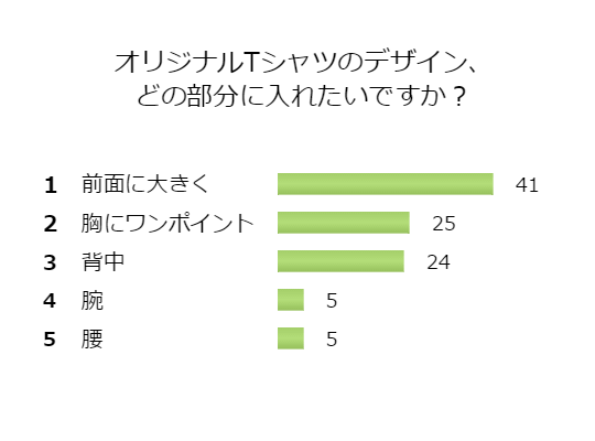 Tシャツのどの部分にデザインを施せば格好いいTシャツが作れるでしょうか。アンケートで100人にデザインを入れる場所を聞いてみました。