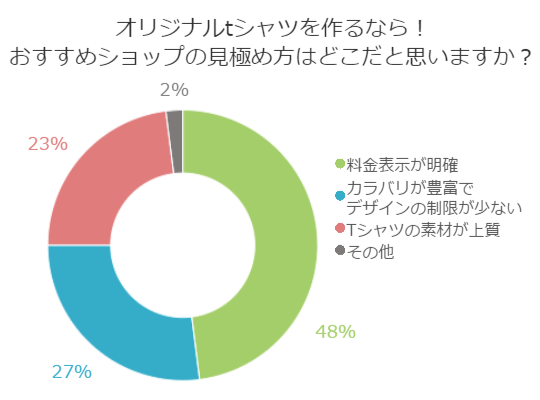 今回のアンケートでは、メンズのデザインTシャツを依頼する為に何に注意してショップ選びをするのかうかがってみました。
